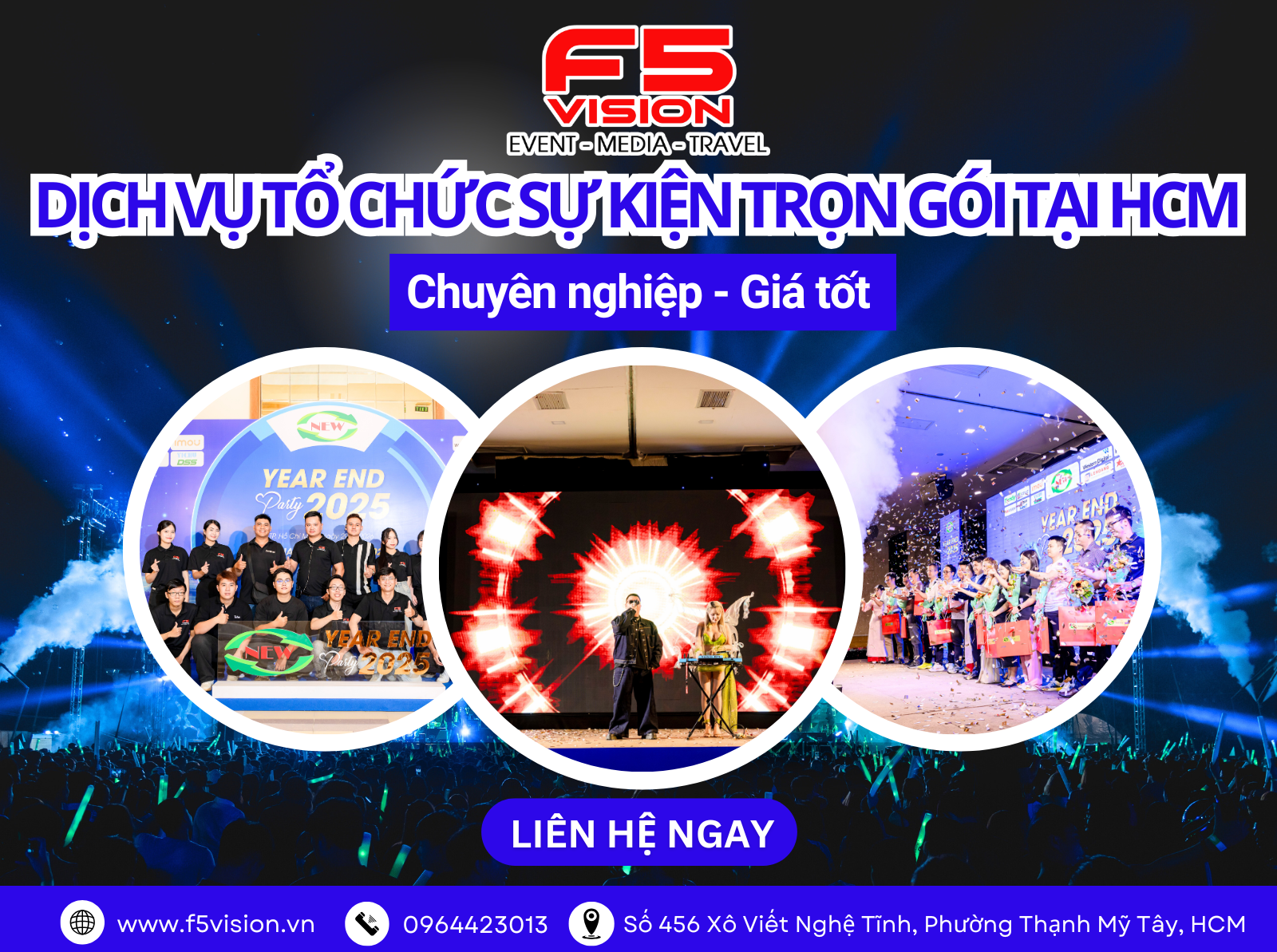 Đó là lý do dịch vụ tổ chức sự kiện trọn gói ra đời và trở thành lựa chọn hàng đầu của các công ty, tập đoàn, tổ chức trong và ngoài nước. F5VISION hiện có dịch vụ tổ chức sự kiện trọn gói chuyên nghiệp, sáng tạo và hiệu quả, với báo giá minh bạch – tối ưu ngân sách cho từng nhu cầu trong năm 2025.