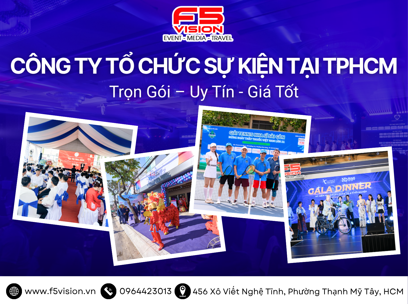 Chính vì vậy, việc lựa chọn một công ty tổ chức sự kiện tại TPHCM trọn gói – uy tín, giá tốt sẽ giúp doanh nghiệp tiết kiệm thời gian, tối ưu chi phí và đảm bảo chất lượng chương trình một cách tối đa. F5VISION hiện có dịch vụ tổ chức sự kiện trọn gói chuyên nghiệp, sáng tạo và hiệu quả, với báo giá minh bạch – tối ưu ngân sách cho từng nhu cầu.