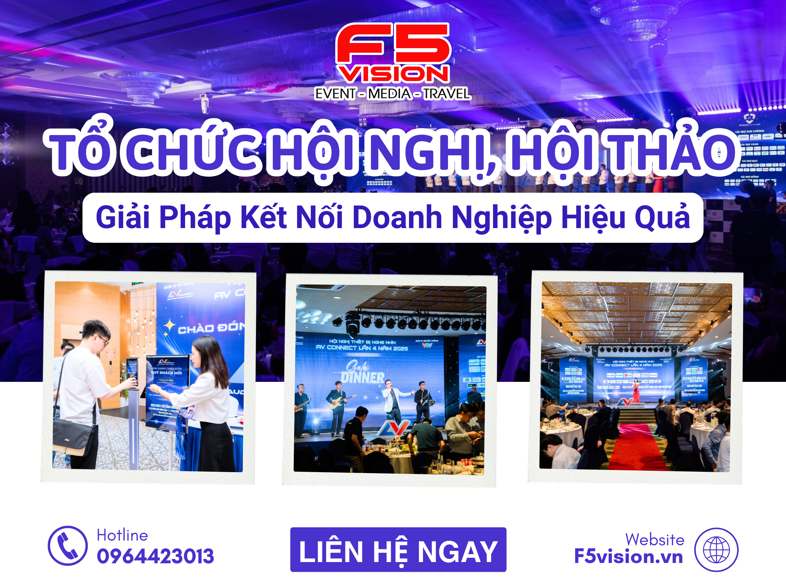 Tuy nhiên, để tổ chức thành công một sự kiện hội nghị, hội thảo không phải là điều đơn giản. Nó đòi hỏi sự phối hợp chặt chẽ giữa nhiều hạng mục, từ ý tưởng, nội dung, thiết kế đến vận hành và xử lý rủi ro. Chính vì vậy, lựa chọn một đơn vị tổ chức hội nghị, hội thảo uy tín là quyết định quan trọng giúp doanh nghiệp đảm bảo sự kiện diễn ra thành công, chuyên nghiệp và mang lại hiệu quả tối đa. Với kinh nghiệm nhiều năm trong ngành, F5VISION tự hào là đối tác đồng hành tin cậy của hàng trăm doanh nghiệp lớn nhỏ trong việc tổ chức hội nghị – hội thảo chuyên nghiệp, từ quy mô nhỏ gọn nội bộ đến những sự kiện cấp quốc gia, quốc tế.