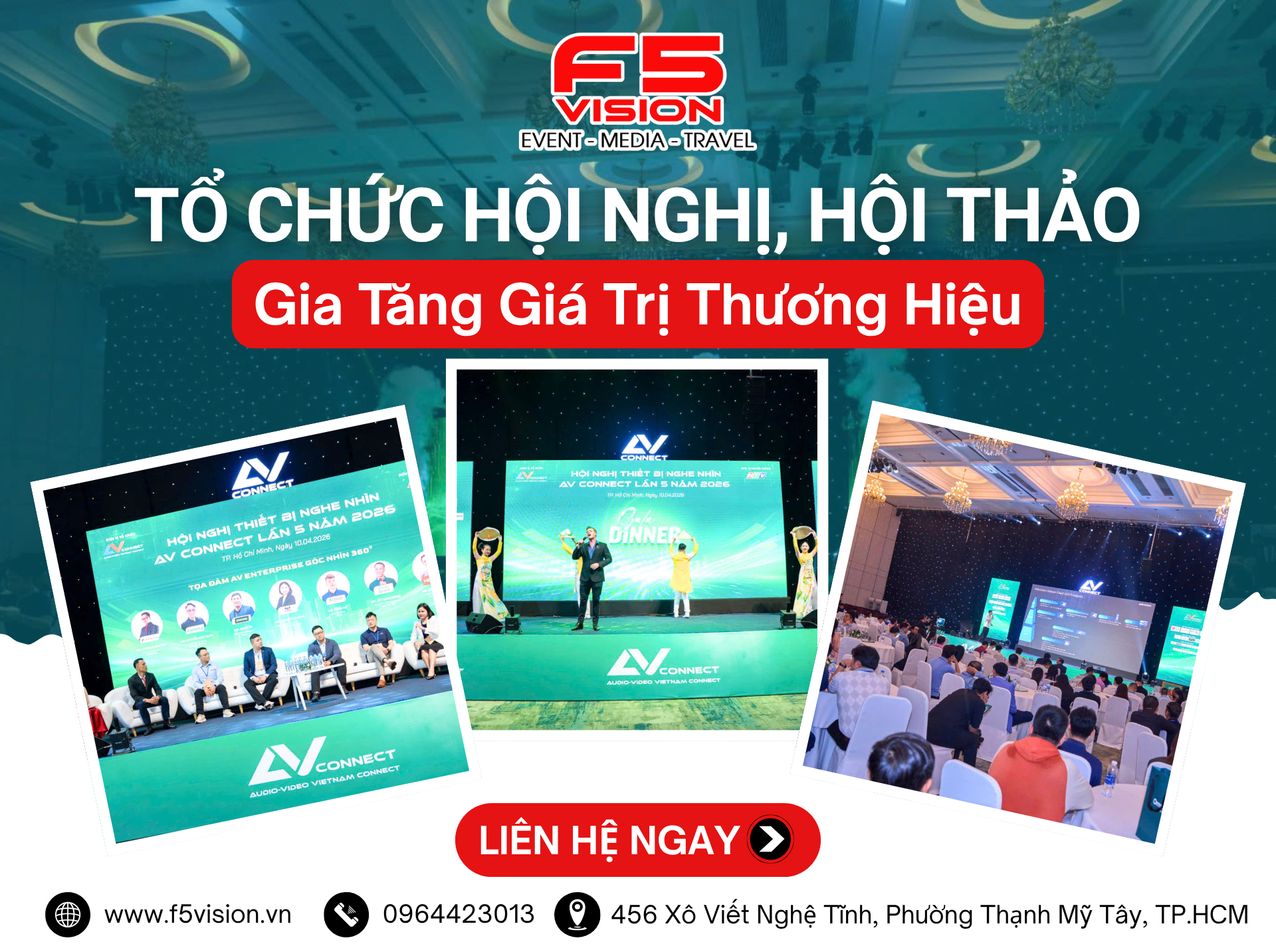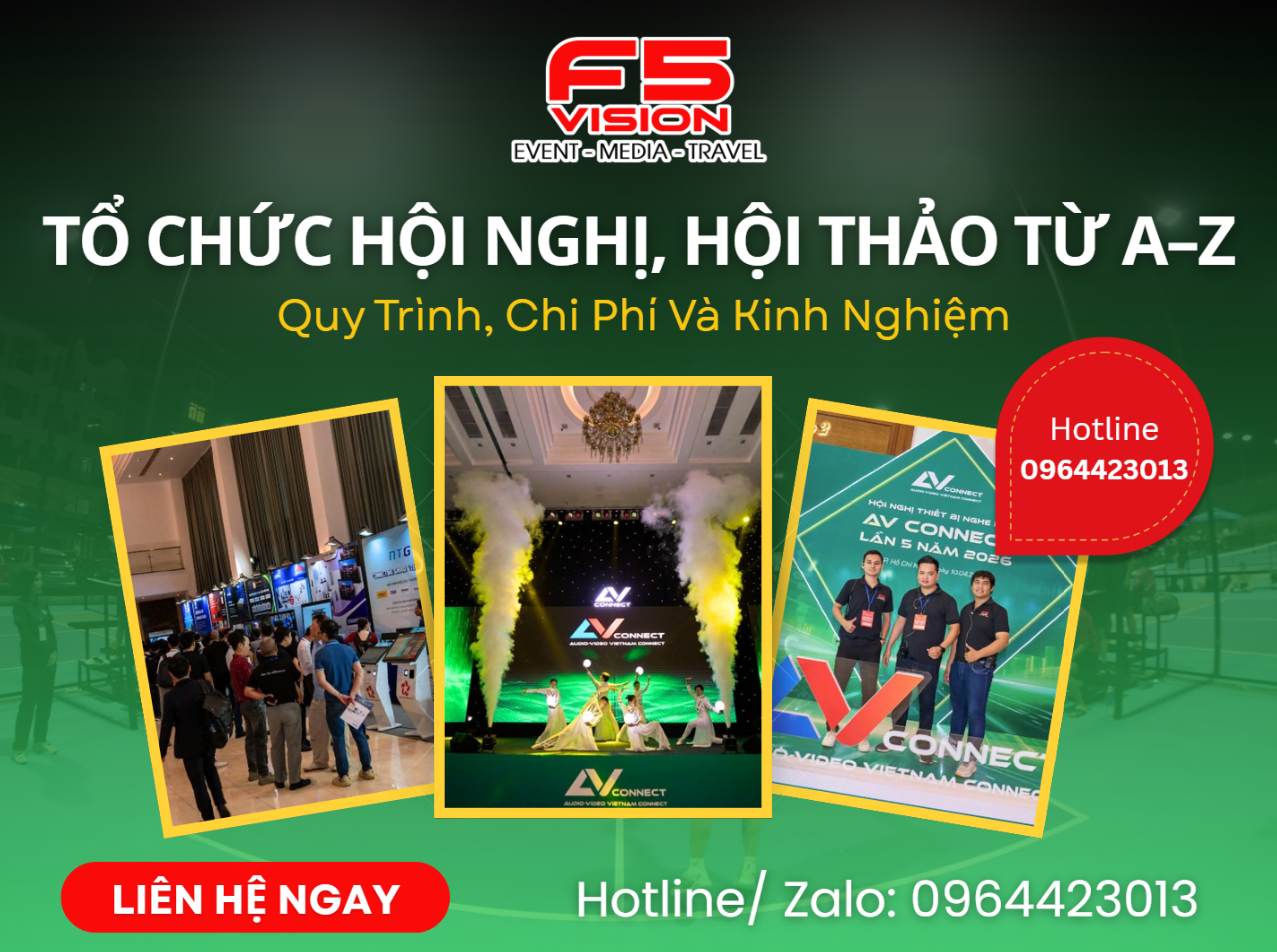 Tuy nhiên, để tổ chức một hội nghị, hội thảo chuyên nghiệp, chỉn chu và hiệu quả không phải là điều đơn giản. Đó là cả một quá trình bao gồm nhiều bước từ lên ý tưởng, lập kế hoạch, triển khai cho đến đo lường hiệu quả sau sự kiện. Bài viết dưới đây sẽ giúp bạn hiểu rõ toàn bộ quy trình tổ chức hội nghị, hội thảo từ A–Z, đồng thời cung cấp góc nhìn thực tế về chi phí và những kinh nghiệm quan trọng để sự kiện thành công. Với kinh nghiệm nhiều năm trong ngành, F5VISION tự hào là đối tác đồng hành tin cậy của hàng trăm doanh nghiệp lớn nhỏ trong việc tổ chức hội nghị – hội thảo chuyên nghiệp, từ quy mô nhỏ gọn nội bộ đến những sự kiện cấp quốc gia, quốc tế.