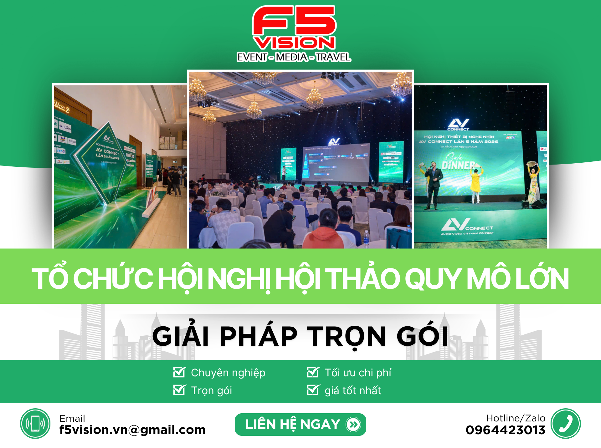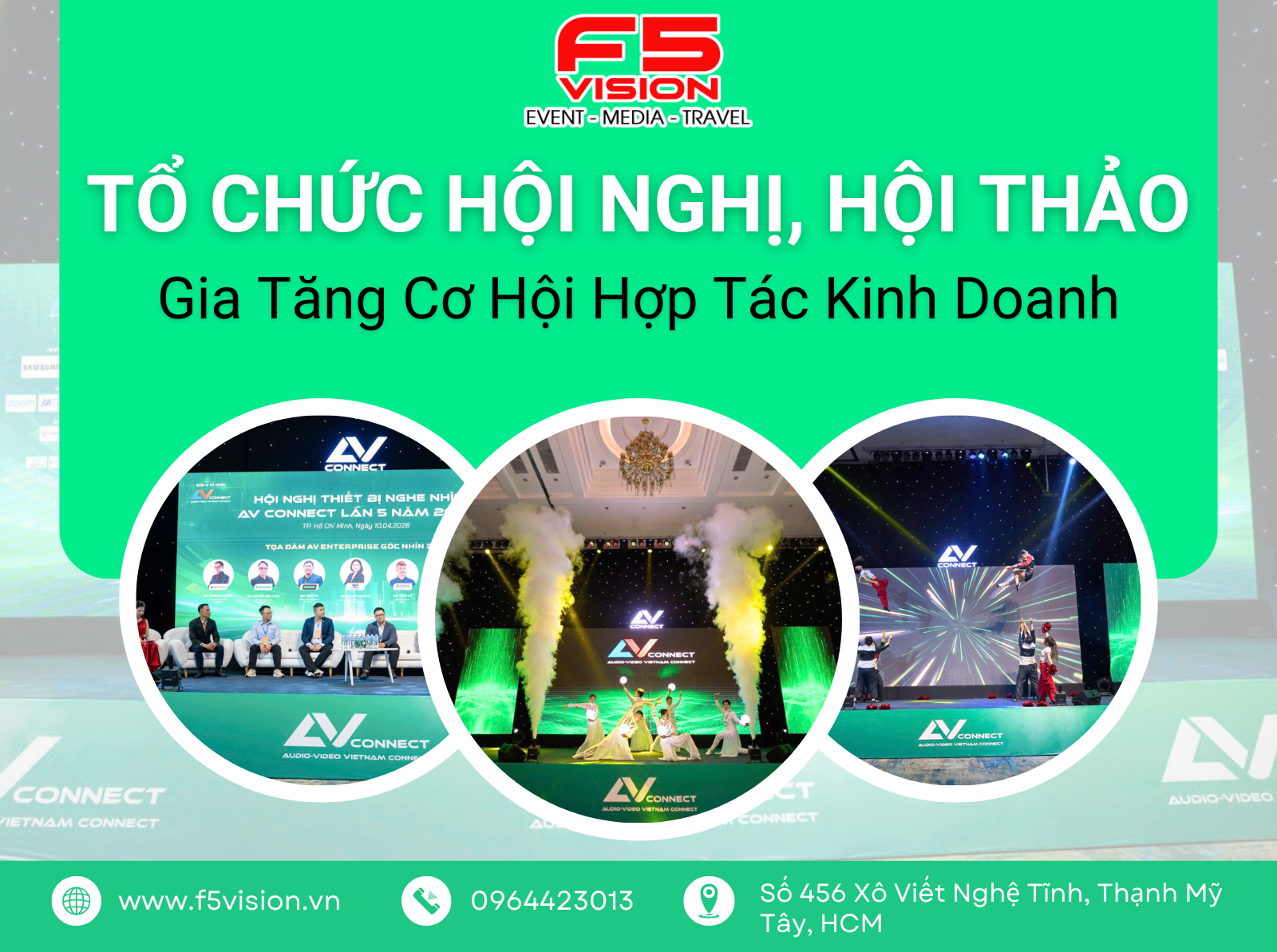 Tuy nhiên, để tổ chức một chương trình chuyên nghiệp, chỉn chu và mang lại hiệu quả thực tế không phải là điều đơn giản. Từ khâu lên ý tưởng, lập kế hoạch, chọn địa điểm, chuẩn bị thiết bị, điều phối nhân sự đến xử lý phát sinh trong ngày diễn ra sự kiện đều cần được thực hiện bài bản. Chính vì vậy, lựa chọn dịch vụ tổ chức hội thảo, hội nghị trọn gói đang là xu hướng được nhiều doanh nghiệp ưu tiên bởi khả năng tối ưu chi phí – tiết kiệm thời gian – đảm bảo hiệu quả toàn diện. Với kinh nghiệm nhiều năm trong ngành, F5VISION tự hào là đối tác đồng hành tin cậy của hàng trăm doanh nghiệp lớn nhỏ trong việc tổ chức hội nghị – hội thảo chuyên nghiệp, từ quy mô nhỏ gọn nội bộ đến những sự kiện cấp quốc gia, quốc tế.