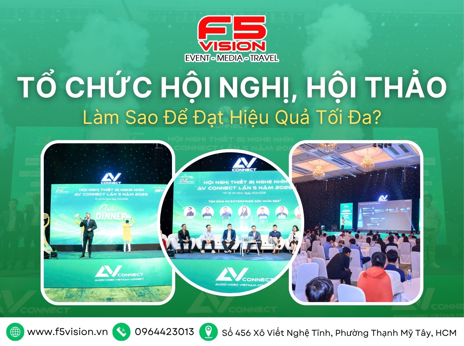 Chính vì vậy, việc nắm rõ kinh nghiệm tổ chức hội nghị, hội thảo doanh nghiệp thành công là yếu tố quan trọng giúp doanh nghiệp chủ động hơn trong quá trình triển khai. Từ khâu lên ý tưởng, lập kế hoạch, chọn địa điểm, chuẩn bị nội dung, quản lý khách mời đến vận hành chương trình – mỗi bước đều cần sự tính toán kỹ lưỡng. Bài viết dưới đây sẽ chia sẻ toàn diện những kinh nghiệm thực tế giúp doanh nghiệp tổ chức hội nghị, hội thảo hiệu quả, chuyên nghiệp và tạo được dấu ấn rõ nét. Với kinh nghiệm nhiều năm trong ngành, F5VISION tự hào là đối tác đồng hành tin cậy của hàng trăm doanh nghiệp lớn nhỏ trong việc tổ chức hội nghị – hội thảo chuyên nghiệp, từ quy mô nhỏ gọn nội bộ đến những sự kiện cấp quốc gia, quốc tế.