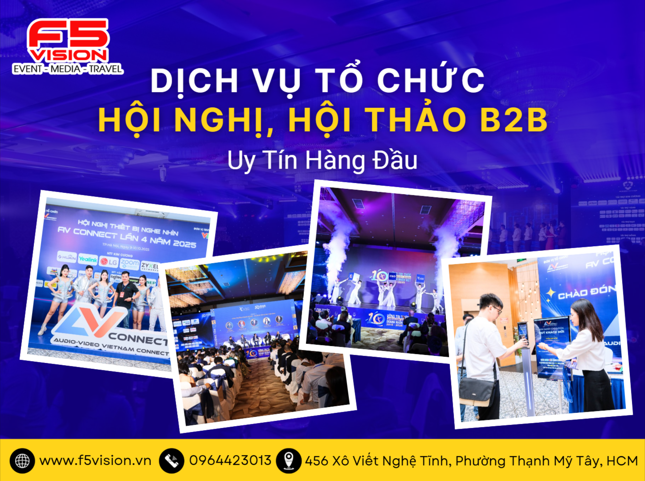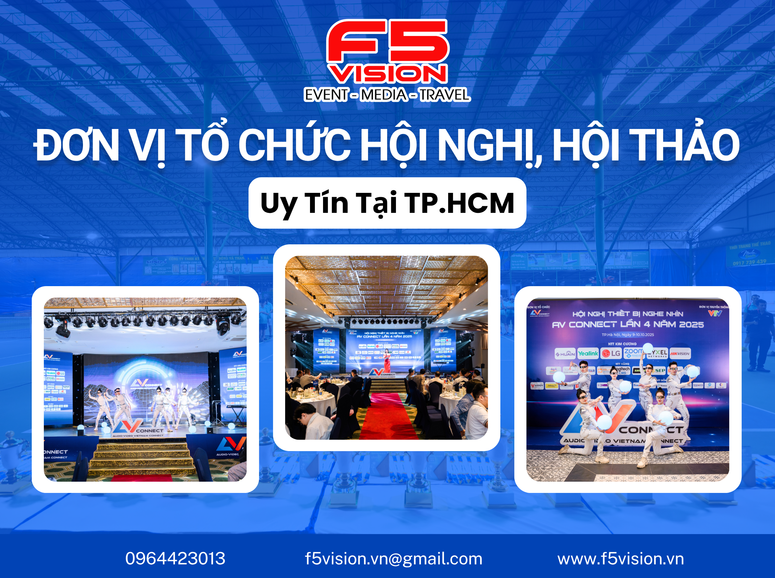 Tuy nhiên, để tổ chức thành công một sự kiện hội nghị, hội thảo không phải là điều đơn giản. Nó đòi hỏi sự phối hợp chặt chẽ giữa nhiều hạng mục, từ ý tưởng, nội dung, thiết kế đến vận hành và xử lý rủi ro. Chính vì vậy, lựa chọn một đơn vị tổ chức hội nghị, hội thảo uy tín là quyết định quan trọng giúp doanh nghiệp đảm bảo sự kiện diễn ra thành công, chuyên nghiệp và mang lại hiệu quả tối đa. Với kinh nghiệm nhiều năm trong ngành, F5VISION tự hào là đối tác đồng hành tin cậy của hàng trăm doanh nghiệp lớn nhỏ trong việc tổ chức hội nghị – hội thảo chuyên nghiệp, từ quy mô nhỏ gọn nội bộ đến những sự kiện cấp quốc gia, quốc tế.