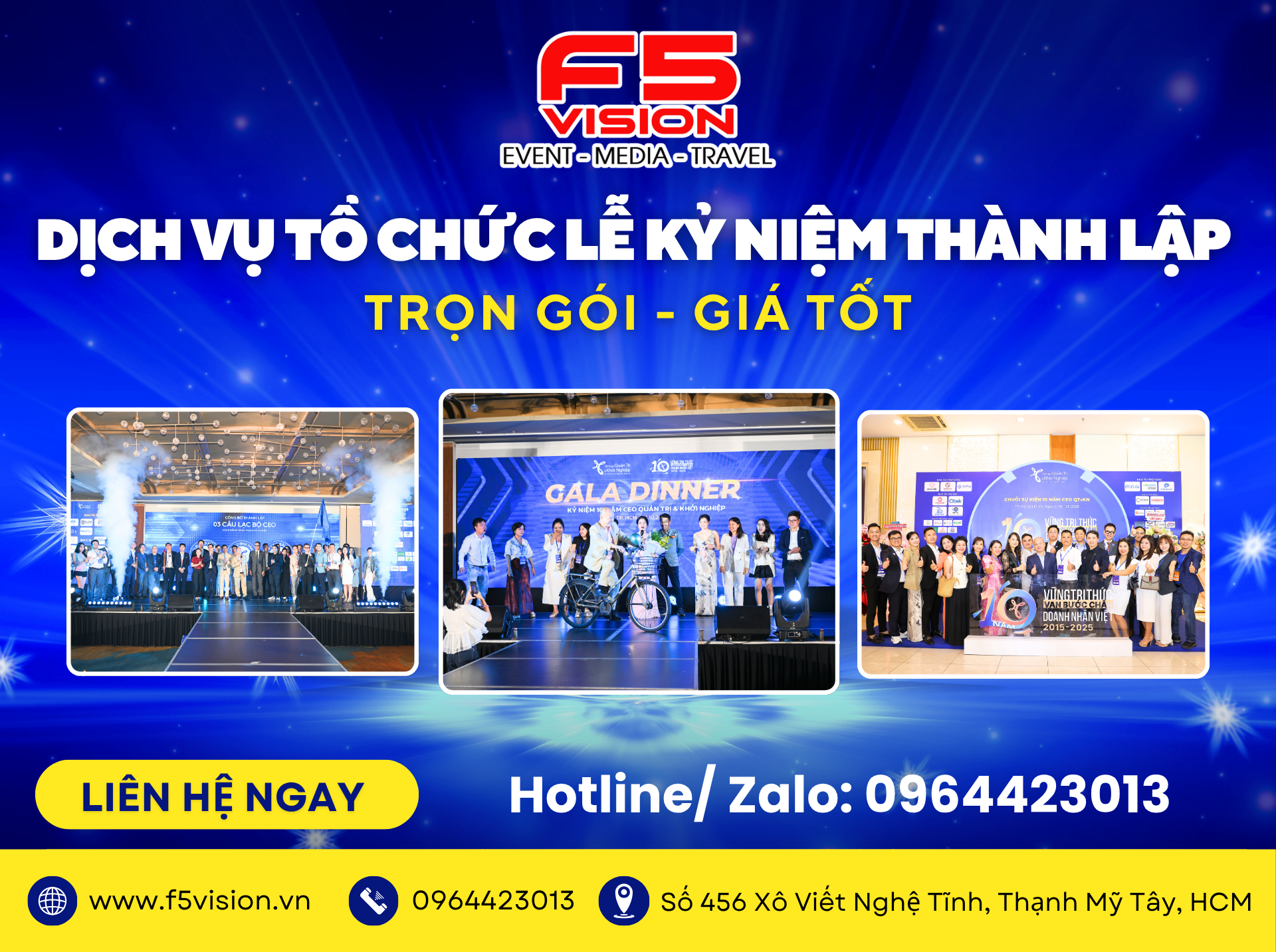 Nếu bạn đang tìm kiếm một đơn vị tổ chức sự kiện trọn gói uy tín vui lòng liên hệ ngay đến F5VISION theo số Hotline(Zalo) – 0964423013 để được tư vấn và báo giá tốt nhất