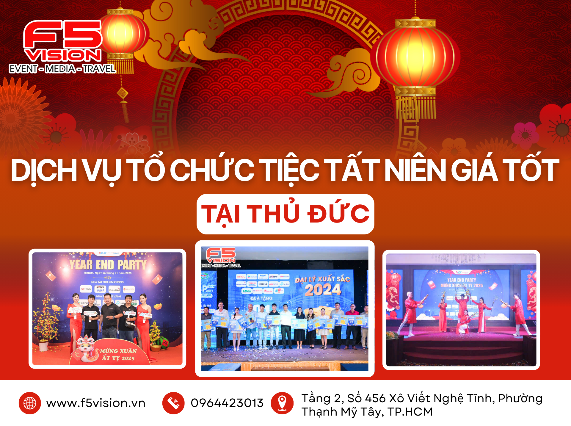 Nếu bạn đang tìm kiếm một đơn vị Tổ Chức Tiệc Tất Niên Cuối Năm trọn gói chuyên nghiệp vui lòng liên hệ ngay đến F5VISION theo số Hotline(Zalo) – 0964423013 để được hỗ trợ tốt nhất
