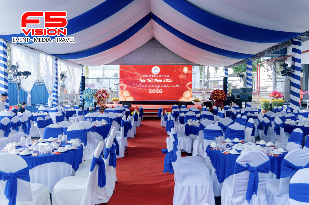 Báo giá tổ chức tiệc tất niên trọn gói sẽ bao gồm nhiều yếu tố khác nhau tùy thuộc vào yêu cầu cụ thể của khách hàng. Tại F5VISION, chúng tôi cam kết mang đến những gói dịch vụ linh hoạt, tối ưu chi phí nhưng vẫn đảm bảo tính chuyên nghiệp và sự độc đáo trong từng sự kiện.