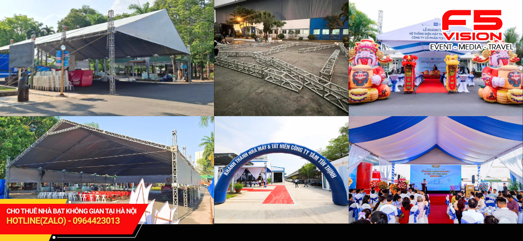 Nếu bạn đang tìm đơn vị Cho thuê nhà bạt không gian tại TP.HCM, hãy liên hệ ngay với F5VISION theo Hotline(Zalo) – 0964423013 để được tư vấn và hỗ trợ tốt nhất. Với sự chuẩn bị kỹ lưỡng và đội ngũ chuyên nghiệp, F5VISION cam kết mang đến cho bạn những giải pháp tổ chức hoàn hảo nhất, từ khâu lên ý tưởng đến triển khai thực hiện!