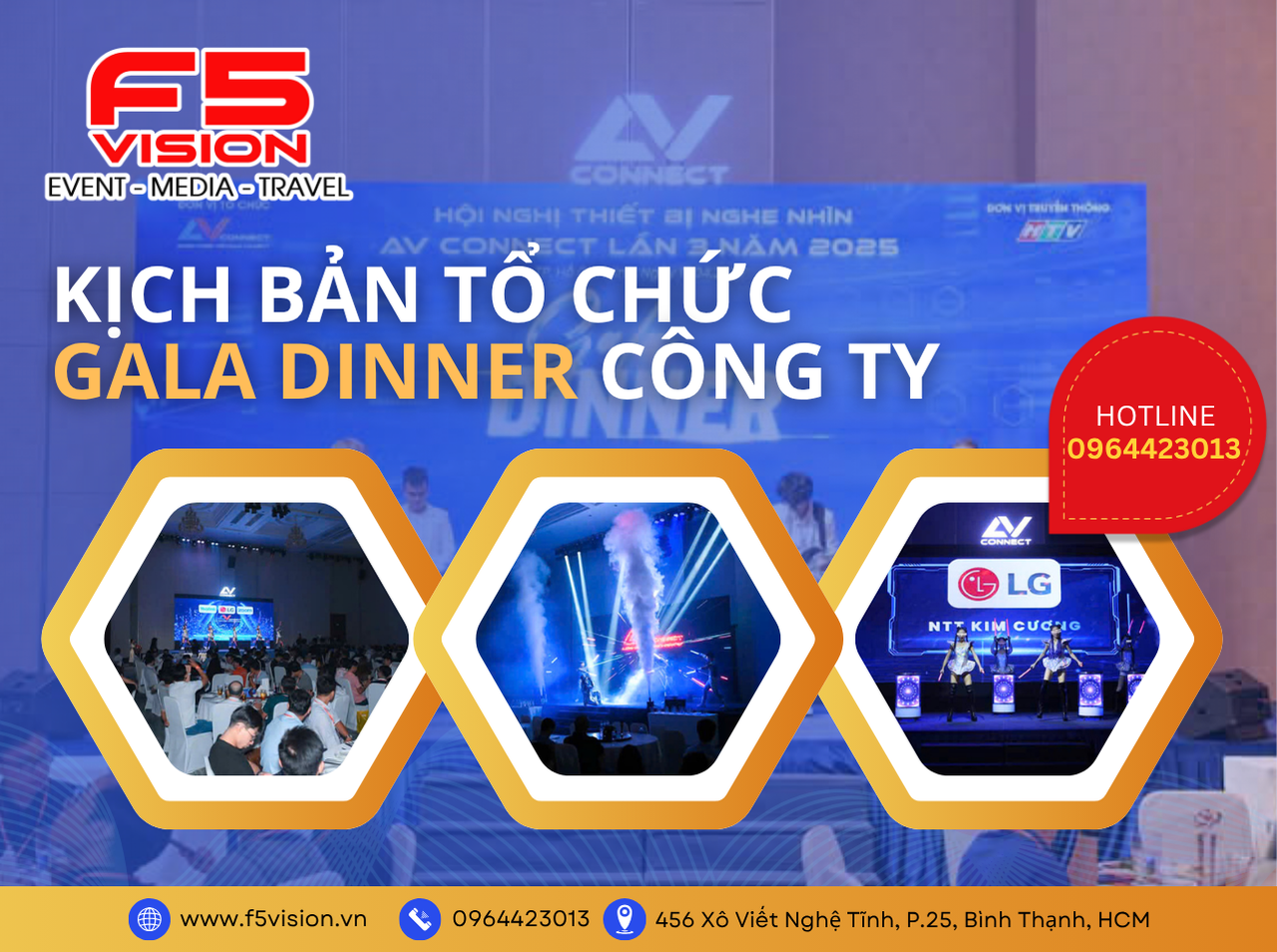 F5VISION là Công ty tổ chức sự kiện chuyên nghiệp cho Gala Dinner với nhiều năm kinh nghiệm, chuyên cung cấp dịch vụ tổ chức sự kiện trọn gói với mức giá tốt. F5VISION luôn mang đến những giải pháp tối ưu, sáng tạo và đẳng cấp cho các doanh nghiệp, giúp xây dựng hình ảnh chuyên nghiệp và gây ấn tượng mạnh với đối tác, khách hàng.